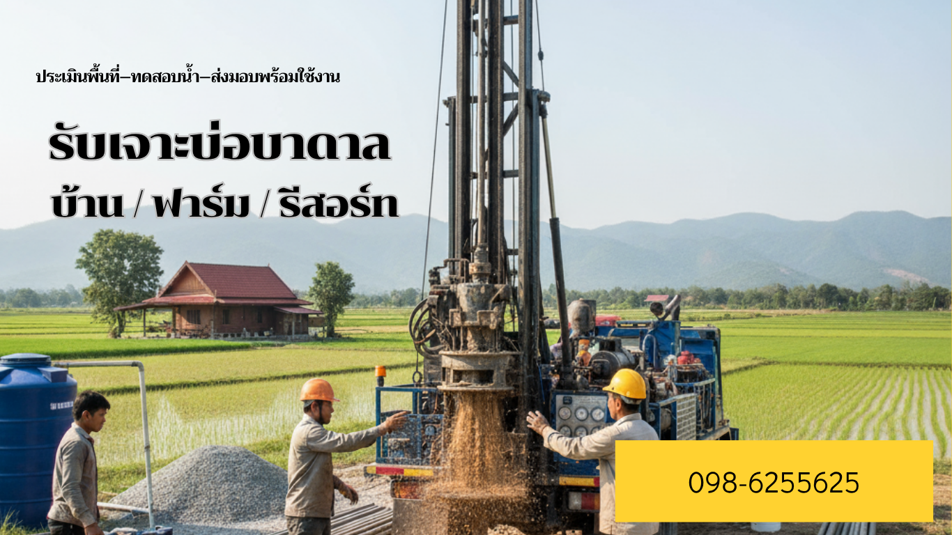 เจาะบ่อบาดาล บ้านพัก/เกษตร/ปศุสัตว์/รีสอร์ท/โรงงาน
